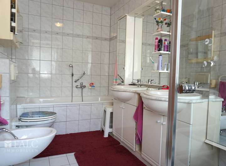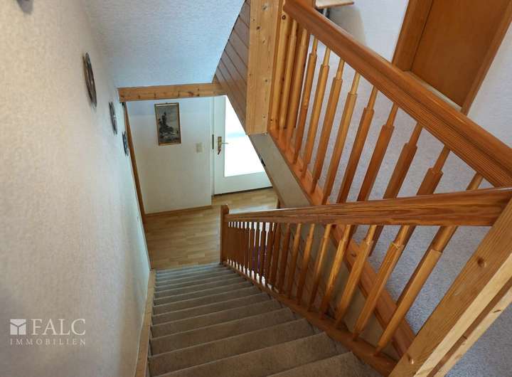 Über die Treppe im Eingangsbereich kommen Sie in das Obergeschoss des Hauses. Dieses erstreckt sich über drei weitere Zimmer, welche individuell als Schlafzimmer, Gästezimmer, Kinderzimmer oder Büro eingerichtet werden können. Weiterhin befindet sich hier oben noch das schöne Tageslicht-Bad mit Badewanne und eine kleine Küche sowie ein Balkon