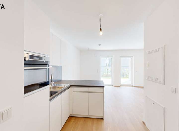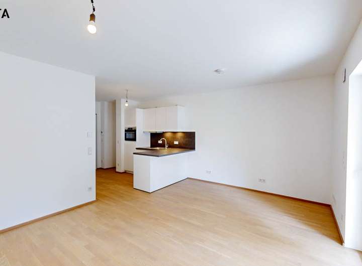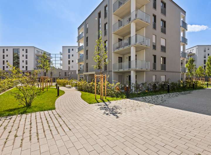 Auch innen überzeugen die Wohnungen mit praktischen Grundrissen und durchdachten Raumnutzungskonzepten. Offene Räume, eine elegante Wand- und Bodengestaltung und ein zeitloses Design in Küche und Bad lassen viel Freiraum für eine individuelle Gestaltung der Wohnung.