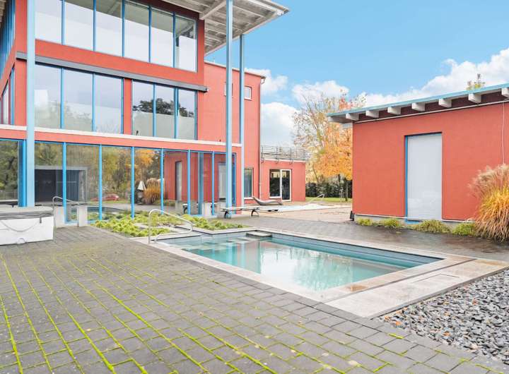 Ein exklusives Highlight sind die Pools im Außenbereich, die dem Ensemble eine außergewöhnliche Wohlfühlatmosphäre verleihen. Sie bieten sich sowohl für Mitarbeitende und Kunden als auch für private Nutzung an und schaffen einen Rückzugsort mit außergewöhnlichem Charakter. Ergänzt wird dieses Angebot durch einen Innenpool, der aktuell gewerblich genutzt und vermietet wird und zusätzliche Einnahmen generiert.