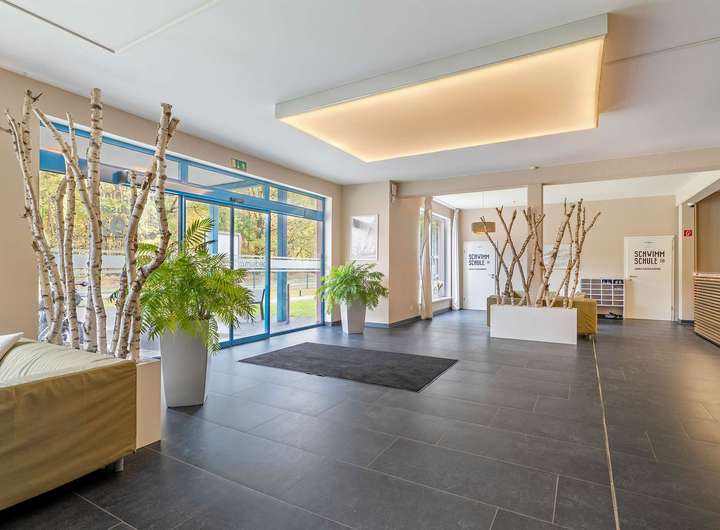 Besonders attraktiv sind die solide Vermietungssituation und die flexiblen Erweiterungsmöglichkeiten. Aktuell bestehen sichere Mieterträge aus Büroflächen und dem vermieteten Innenpool. Insgesamt umfasst das Objekt vierzehn Mietparteien und erwirtschaftet eine Jahresnettokaltmiete in Höhe von 170.379 Euro, was einer Rendite von rund 6,58 Prozent entspricht. Die weiteren Flächen im Obergeschoss bieten zusätzliche Entwicklungspotenziale.
