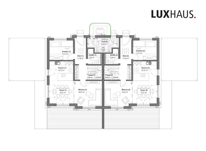 Die charmante Doppelhaushälfte ist ausgestattet mit Objekten deutscher Markenhersteller. Um Ihre individuelle Note zu betonen, laden wir Sie in unsere LUXHAUS Boutique ein - dort erwarten Sie unsere LUXHAUS Innenarchitekten, um mit Ihnen gemeinsam die Ausstattung festzulegen.