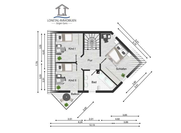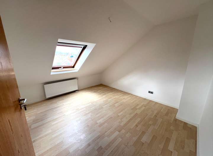 Im Dachgeschoss erwarten Sie zwei einladende Kinderzimmer sowie ein großzügiges Elternschlafzimmer, das mit einem direkten Zugang zu einem Balkon aufwartet. Genießen Sie den tollen Ausblick und die frische Luft, während Sie sich in Ihrem privaten Rückzugsort entspannen. Das neu gestaltete Tageslichtbadezimmer überzeugt mit klaren Linien und modernem Design. Hier stehen Ihnen eine Badewanne, eine Dusche, eine Toilette sowie zwei Waschtische zur Verfügung – alles, was Sie für Ihr Wohlbefinden brauchen.