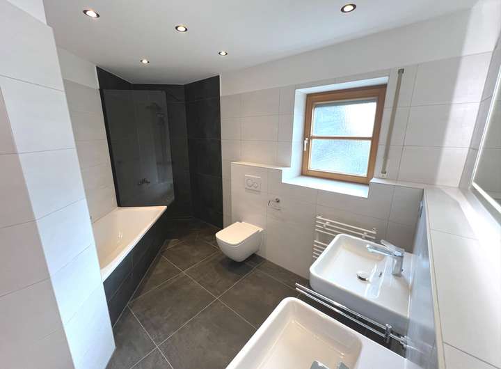 - Tageslichtbadezimmer mit Badewanne und Dusche