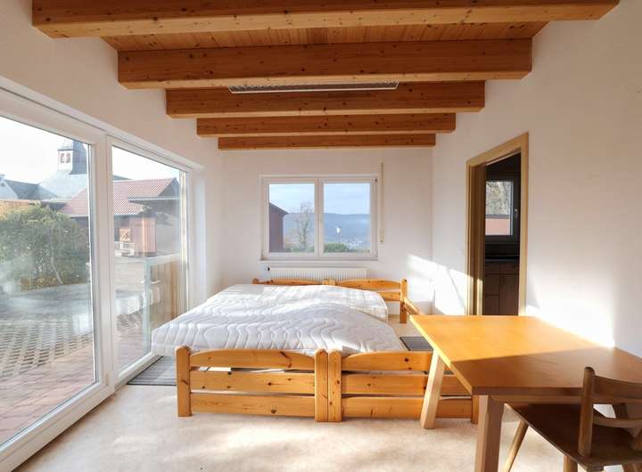 Die große Terrasse mit Garten lädt zum Entspannen ein, ergänzt durch eine Garage sowie zwei Außenstellplätze direkt am Haus. Die ruhige Lage am Waldrand in Großheubach verbindet Natur, Ruhe und eine besondere Atmosphäre – ideal für Menschen, die das Besondere suchen.