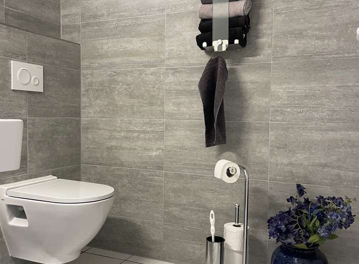 Vom Windfang aus betritt man das tadellose Gäste-WC, das keine Wünsche offenlässt und absolut neu wirkt. Es wurde erst 2016 renoviert und ist äußerst schick und geschmackvoll gestaltet.