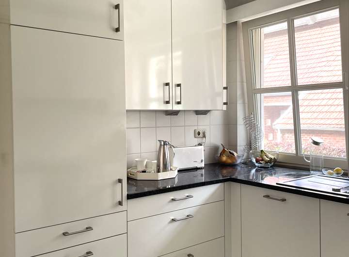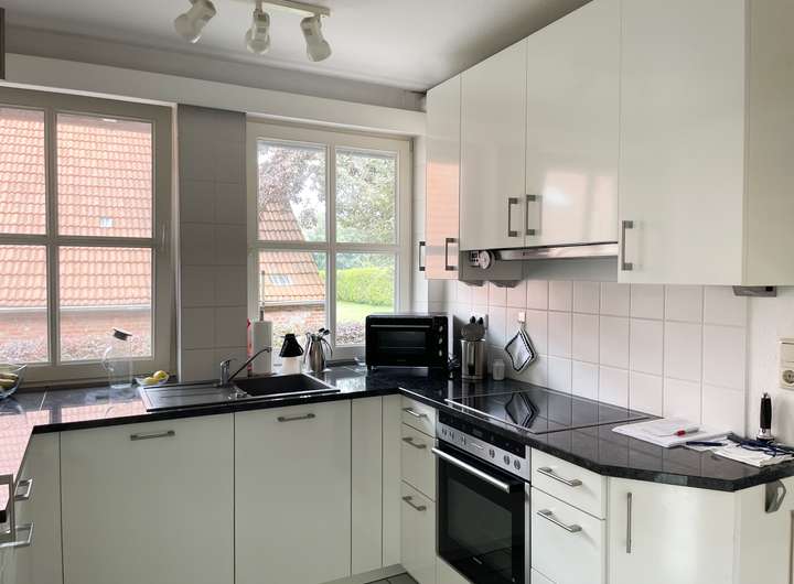 Alle gängigen Elektrogeräte wie ein großer Kühlschrank, eine Spülmaschine von Miele, Backofen und Ceranfeld von Siemens und eine Dunstabzugshaube mit Außenabzug sind vorhanden und befinden sich in tadellosem Zustand.