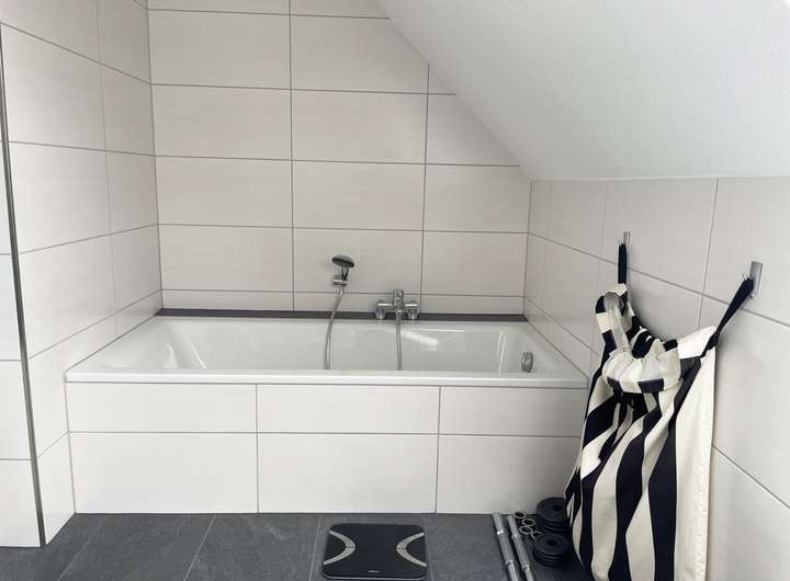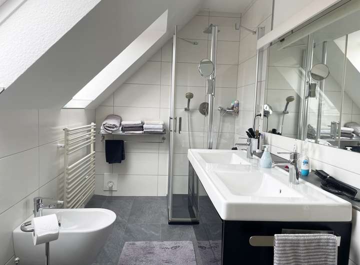 Das Badezimmer im Obergeschoss befindet sich in absolut neuwertigem Zustand und lässt keine Wünsche offen. Es wurde 2016 renoviert und erweitert.