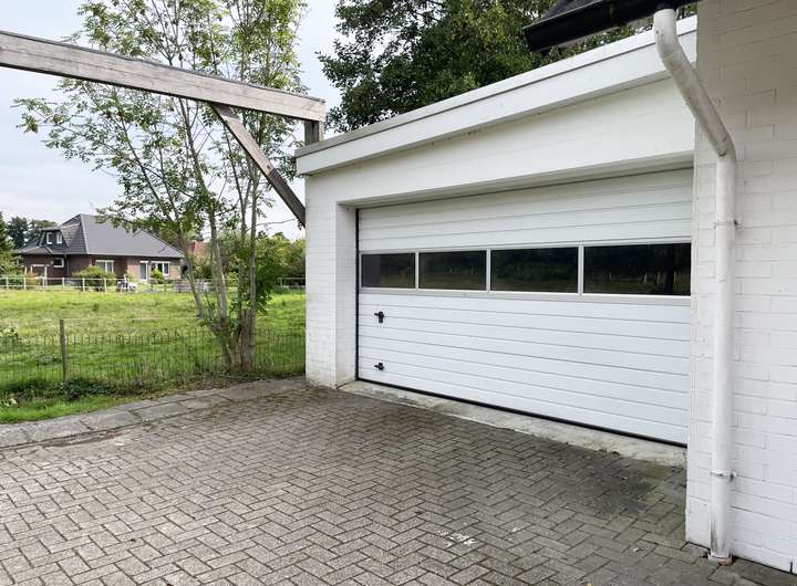 Das Haus steht nach Westen zur Straße hin. Von der Straße aus verläuft eine lange, mit grauen Betonsteinen im Fischgrätmuster gepflasterte Auffahrt entlang der nördlichen Grundstücks-grenze am gesamten Haus entlang bis zum Ende des Grundstücks, wo sich auf der linken Seite das Wohnmobil-Carport und rechts die großzügige Doppelgarage mit elektrischem Garagentor befinden.