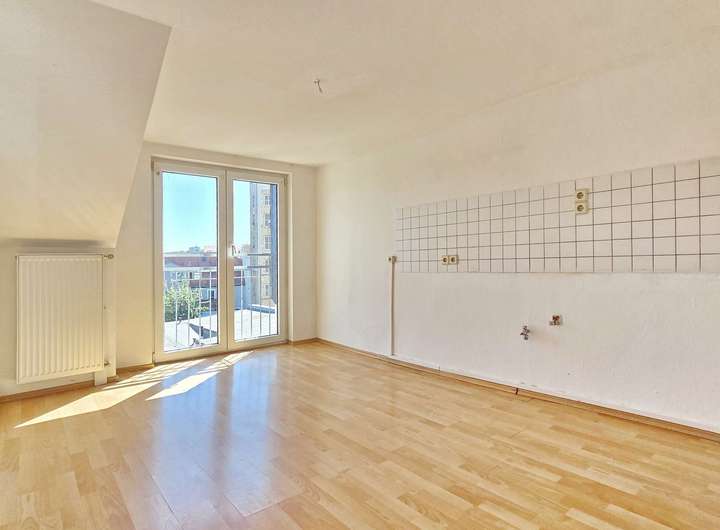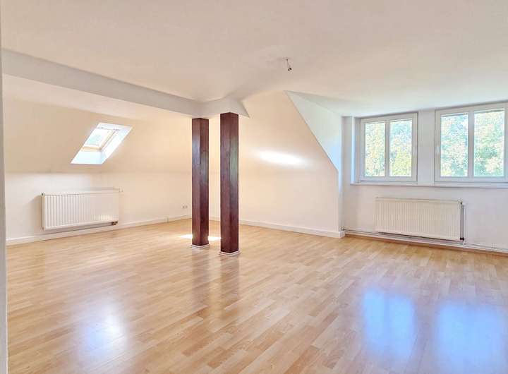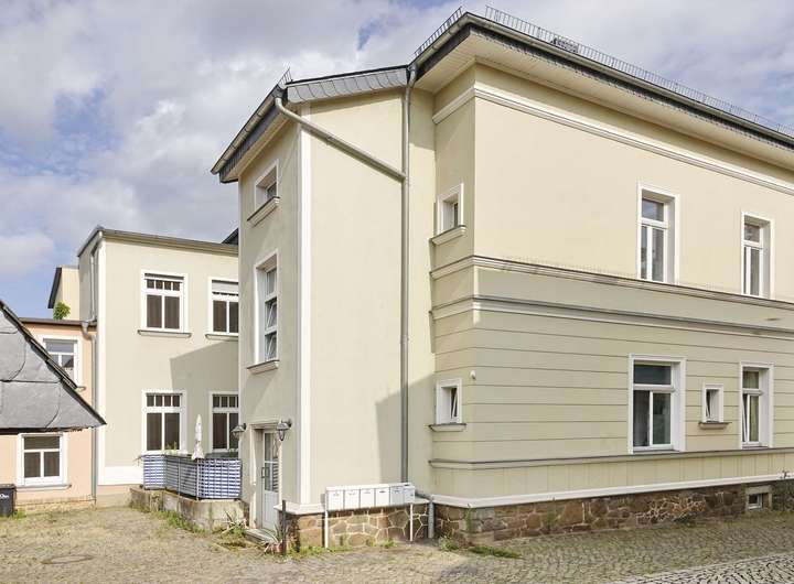 Die großzügige Dachgeschosswohnung und die mit separatem Seiteneingang im Haupthaus, sind aktuell leerstehend.