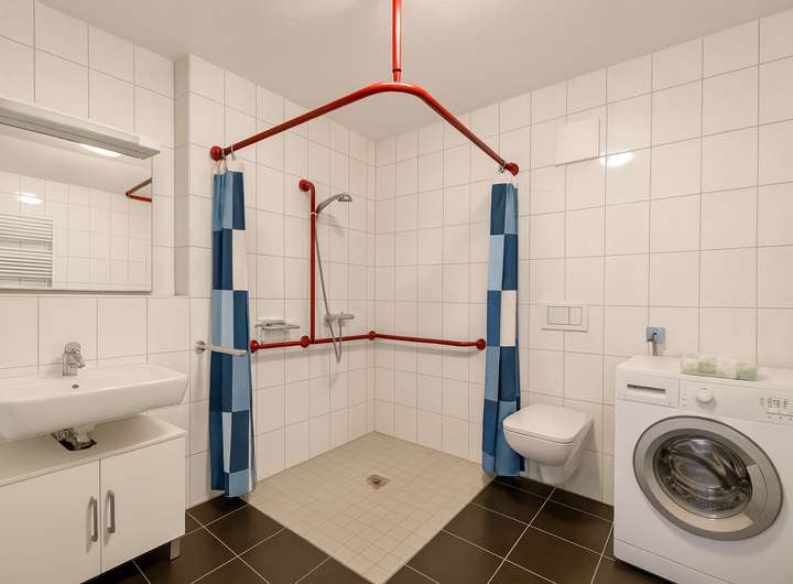Das lichtdurchflutete Schlafzimmer schafft eine angenehme Rückzugsmöglichkeit und lässt sich individuell gestalten. Das innenliegende Badezimmer ist modern gestaltet und verfügt über eine barrierefreie Dusche – perfekt für bequemes, sicheres Duschen.