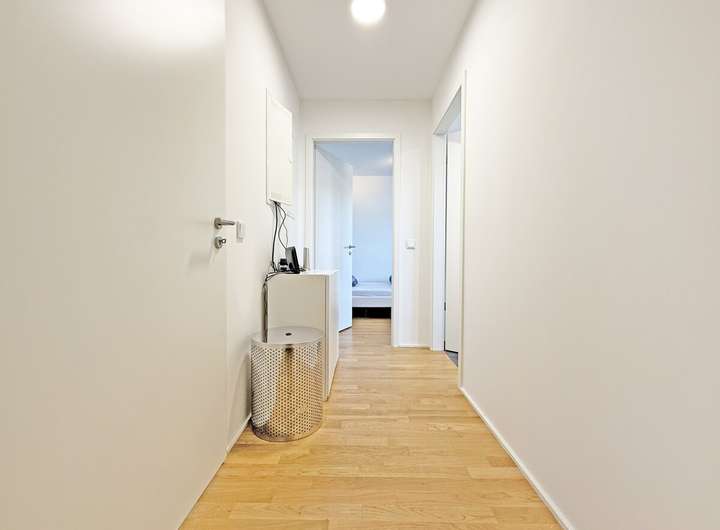 Dank der bodentiefen Fenster mit französischen Balkonen ist die Wohnung besonders hell und freundlich. Elektrische Rollläden sorgen für zusätzlichen Komfort.