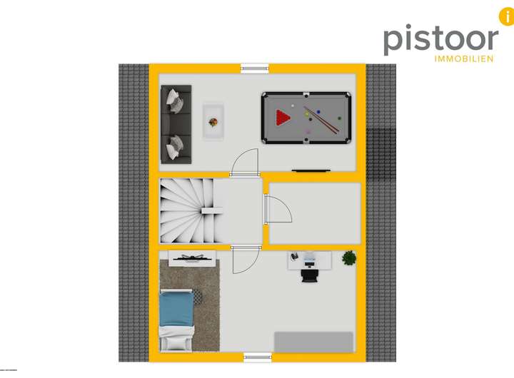 Ein besonderes Highlight ist das Studio im Dachgeschoss. Hier stehen Dir gleich zwei Räume zur Verfügung, die durch ihre Offenheit, die großzügigen Fensterflächen und die besondere Raumhöhe beeindrucken. Ob Jugendbereich, Homeoffice oder kreative Rückzugsorte – Du entscheidest, wie Du diesen Platz nutzen möchtest.