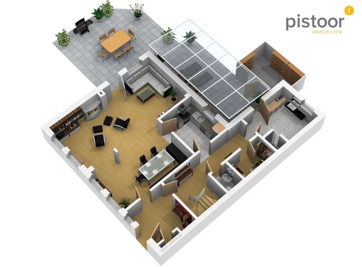- zweite, überdachte Terrasse auf der Gebäuderückseite