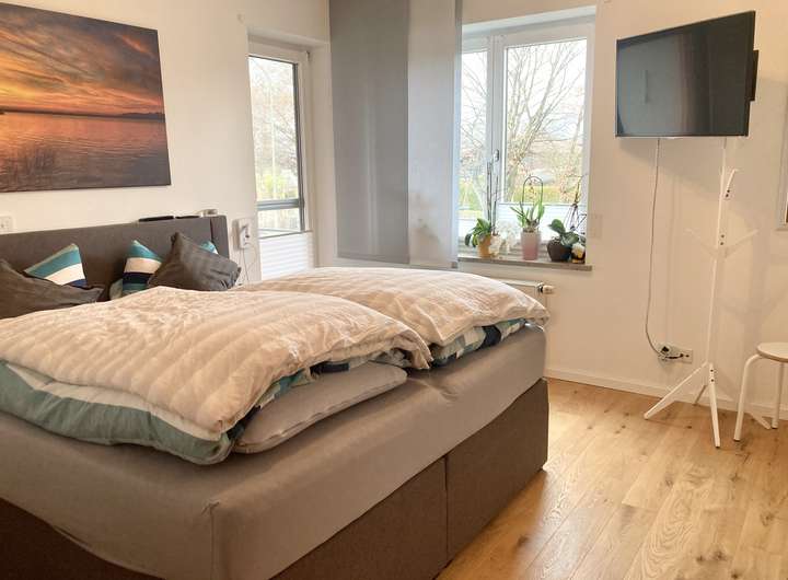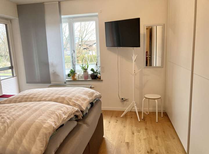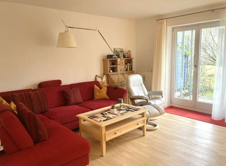 + neuwertige Parkettböden in Wohn- u. Schlafzimmer