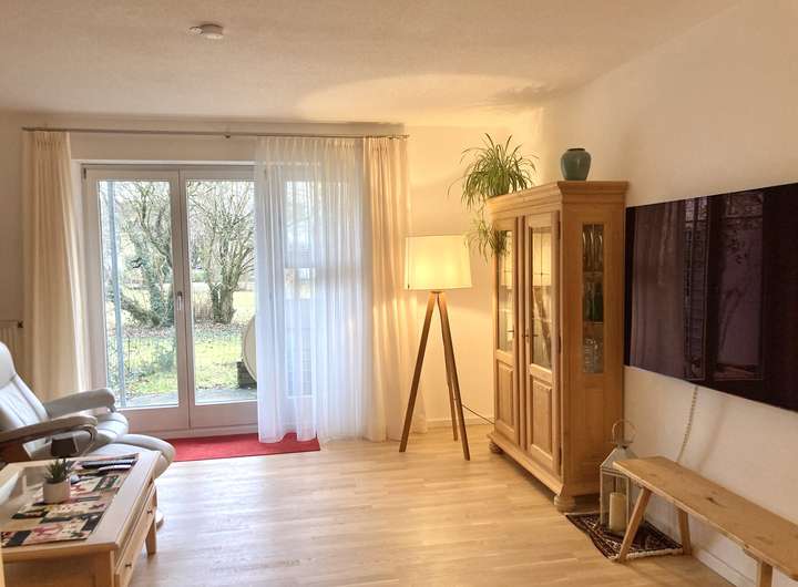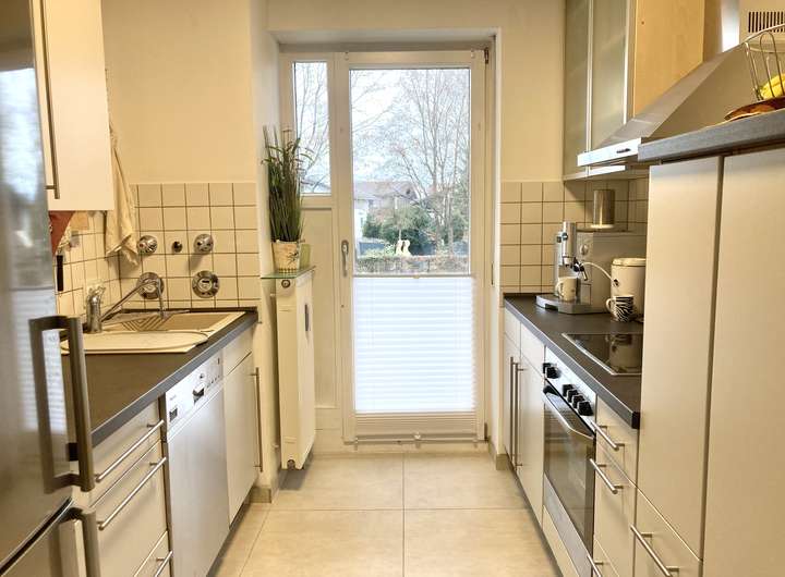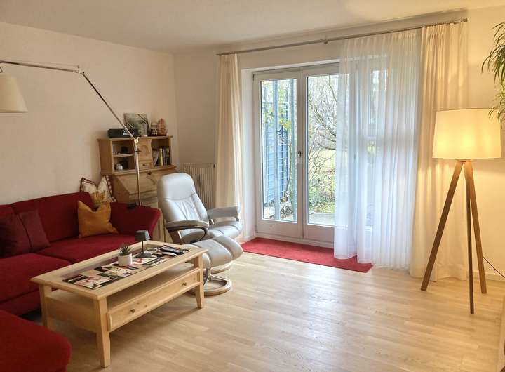 Eine nach Süden ausgerichtete Terrasse mit kleinem Gartenanteil vervollständigt die Wohnung, hier lassen sich die warmen Tage genießen.