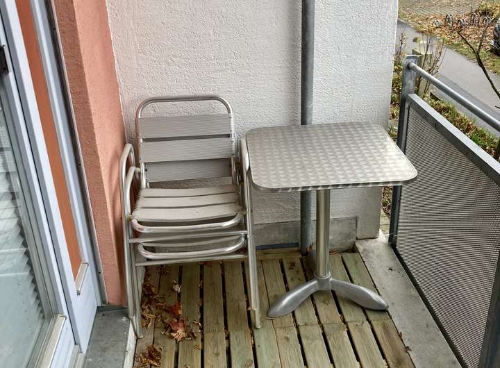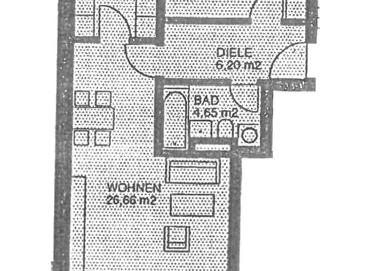 Mittelpunkt der Wohnung ist das große und sonnige Wohnzimmer, es hat große Fensterflächen und bietet ausreichend Stellmöglichkeiten für Polstermöbel und Esstisch. Überzeugen kann auch die helle Küche mit Zugang auf den Balkon. Das Bad ist hell gefliest und ausgestattet mit Badewanne, Waschbecken, Toilette und Anschluss für die Waschmaschine. Das Schlafzimmer hat ebenfalls Zugang zum Balkon und bietet aureichend Platz für ein Doppelbett und einen großen Schrank.