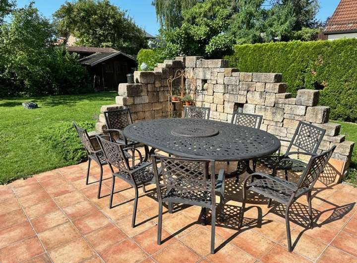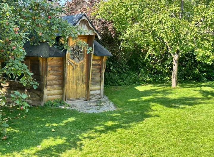 Im Garten stehen neben der 60 qm großen Terrasse eine Grillhütte für bis zu 8 Personen.