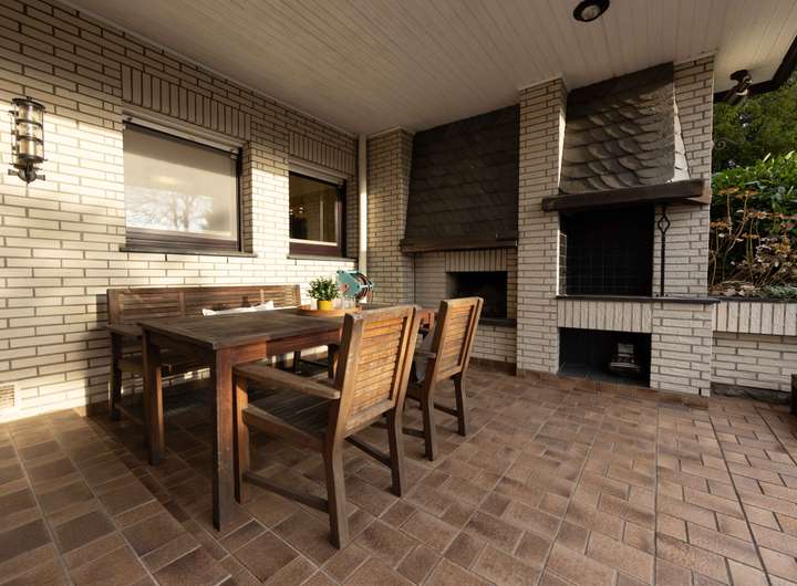 Der nicht einsehbare Garten bietet eine Oase der Ruhe und Erholung. Ein massiv gebautes Gartenhaus sorgt für zusätzlichen Stauraum oder kann als Rückzugsort oder als Atelier genutzt werden. Die teilweise überdachte Terrasse mit Außenkamin, inklusive direkt angrenzendem eingelassenen, offenem Barbecuegrill ist der perfekte Ort für gesellige Grillabende oder entspannte Stunden.