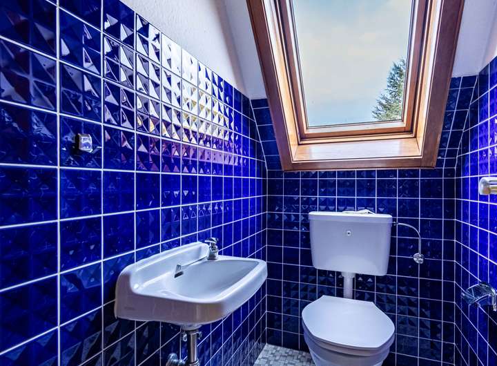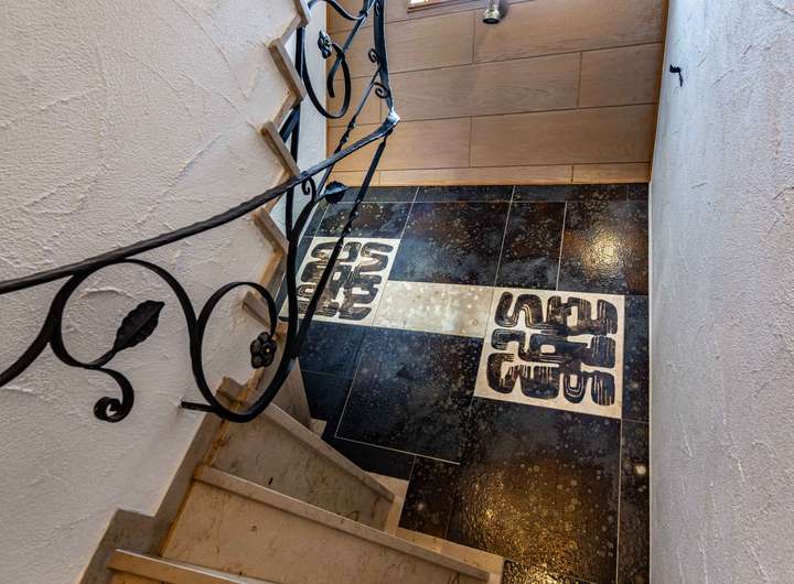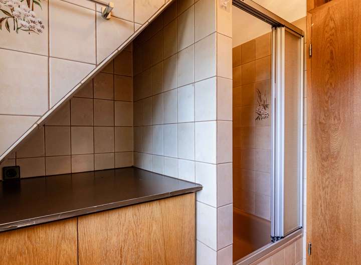 Das Kellergeschoss ist gefliest und bietet zahlreiche Nutzungsmöglichkeiten. In den 70er Jahren wurde eine typisch stilvolle Kellerbar eingebaut – perfekt für gesellige Abende.