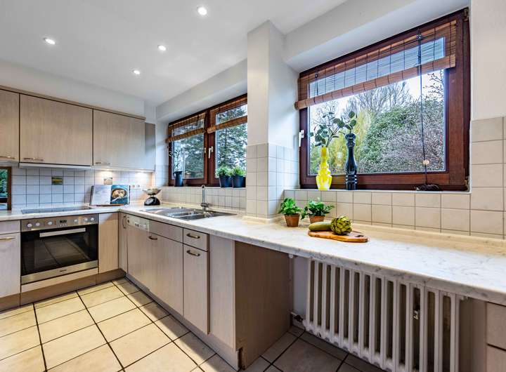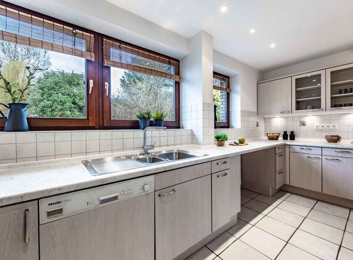- Küche und Esszimmer: Die Einbauküche bietet viel Stauraum und eine praktische Arbeitsfläche für kulinarische Köstlichkeiten. Das nebenliegende Esszimmer lädt zu den Mahlzeiten ein und ist ein beliebter Treffpunkt für die Familie und Gäste.