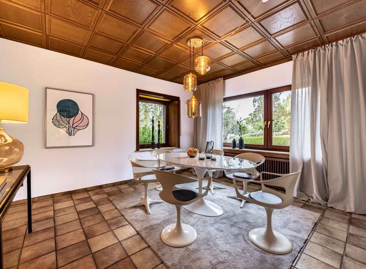Das freistehende Haus wurde 1963 gebaut und überzeugt durch seine hochwertige Substanz, markante architektonische Details der Bauzeit und eine hervorragende Raumaufteilung.