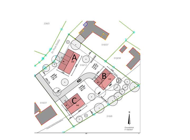 Grundstück A: 1322 qm Preis: 1.080.000,- Euro
