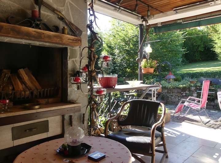 Zusätzlich bietet die Immobilie eine Garage direkt am Haus, ein Außenstellplatz, einen Außenkamin an der überdachten Terrasse sowie eine schöne Einbauküche.