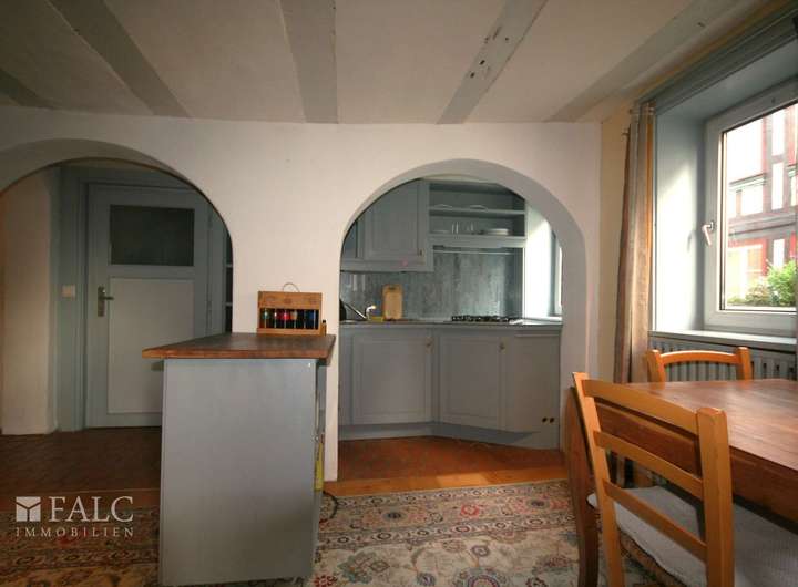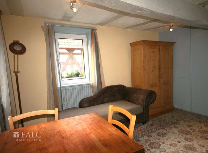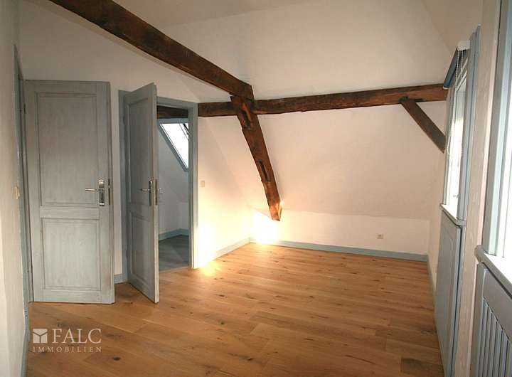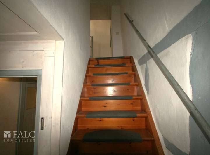 Vom Flur aus führt eine Treppe zu einer weiteren eigenständigen Wohnung, mit drei Zimmern, im Obergeschoß des Hauses.