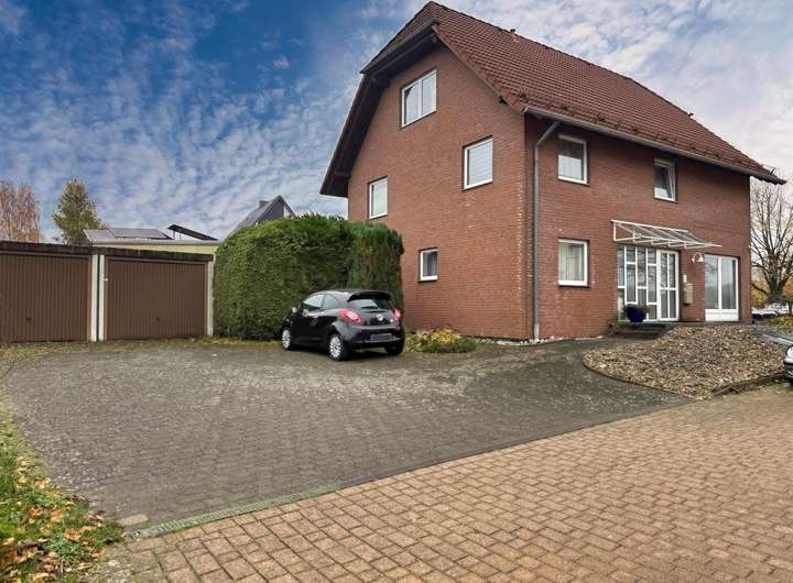 Zudem sind 4 Pkw-Stellplätze und 2 Garagen vorhanden, die ausreichend Parkmöglichkeiten bieten.