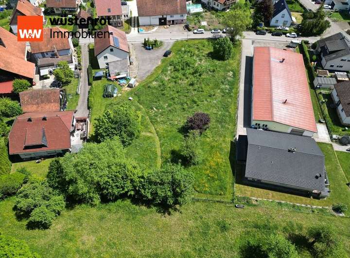 Sonniges und größtenteils ebenes Grundstück in ruhiger Lage im Ortskern von Täferrot. Das Grundstück mit einer Größe von 2900 m² bietet ausreichend Platz für eine großzügige Bebauung mit Einfamilienhäusern bis hin zur Bebauung mit mehreren Doppelhäusern (siehe Bebauungsbeispiel), einem Mehrfamilienhaus oder einem Industriegebäude. Bisher sind ca. 2.180 m² voll erschlossen und die Erschließungskosten entrichtet. Der hintere Bereich des Grundstücks mit 720 m² kann ebenso erschlossen werden.