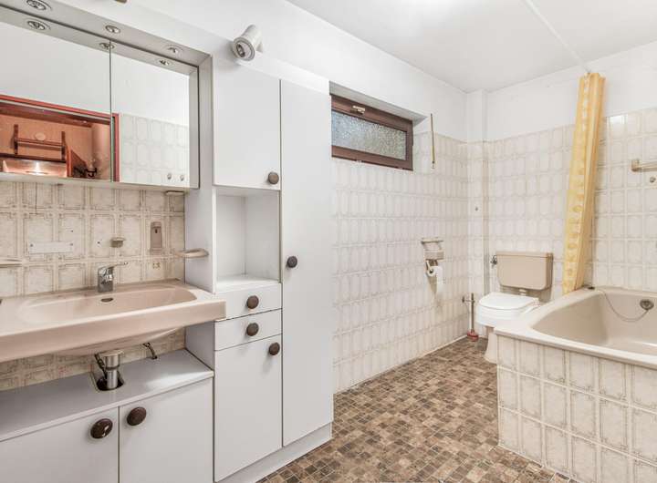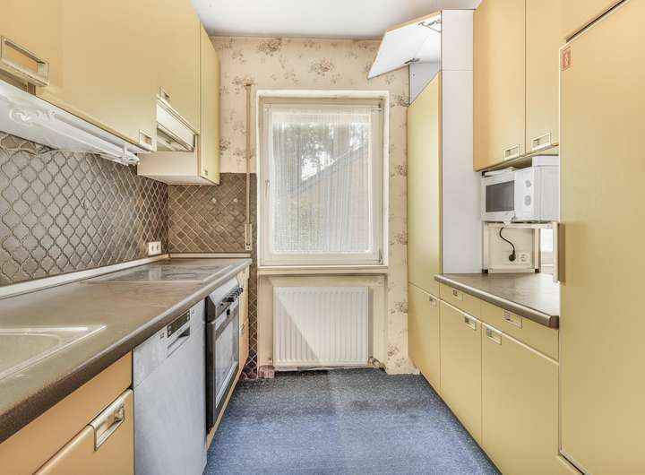 Die Immobilie wurde 1977 erbaut und befindet sich in einem sanierungs- und renovierungsbedürftigen Zustand – eine ideale Gelegenheit für alle, die sich ihren Wohntraum selbst verwirklichen möchten.