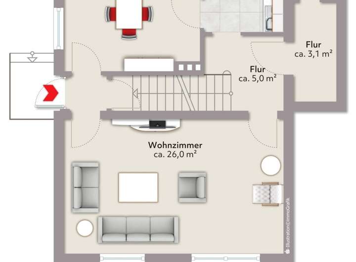 - Holztreppe vorhanden