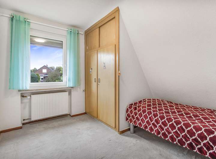 Diese Immobilie ist perfekt für eine kleine Familie, die sich nach einem Zuhause in ruhiger Wohnlage mit Garten sehnt. Die derzeitigen Eigentümer haben die Immobilie stetig in einem sehr gepflegten Zustand gehalten und im Laufe der Zeit diverse Modernisierungen durchgeführt, so dass der nächste Eigentümer unkompliziert einziehen kann. Das Erdgeschoss umfasst ein klassisch geschnittenes Wohnzimmer, die Küche. ein Esszimmer mit Blick in den Garten sowie ein Gäste-WC mit Fenster. Das Dachgeschoss bietet Platz für drei Schlafzimmer und ein Duschbad mit Fenster.