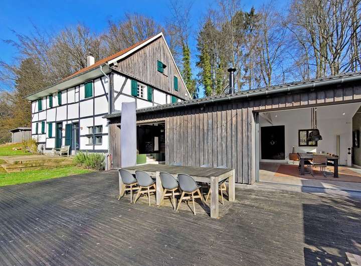 Das historische Fachwerkhaus wurde ursprünglich im Jahr 1629 erbaut und diente über Jahrhunderte als klassisches Gutshaus. Im Jahre 2012 wurde das Objekt von den jetzigen Eigentümern erworben und von der Architektin Ilsetraut Popke mit viel Liebe zum Detail denkmalgerecht saniert. Ein nicht mehr zu rettender Anbau wurde in derselben Kubatur aus Holz neu errichtet und bewusst als Neubau gestaltet. Für diese vorbildliche Restaurierung erhielt das Projekt den Rheinisch-Westfälischen Staatspreis für Denkmalpflege 2014/2015.