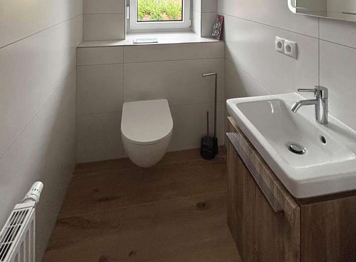 - Hochwertige Bodenbeläge z.B. Fliesen in Dielenoptik im Erdgeschoss