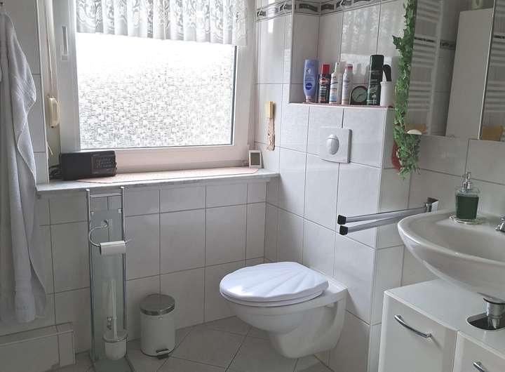 Die Doppelhaushälfte ist gepflegt. Badezimmer und beide Gäste- WC verfügen über Tageslichtfenster. Das Haus verfügt über 2- fach verglaste Kunststofffenster mit Außenrollläden. Die Giebelseite des Hauses wurde verschiefert. Das Bad im Dachgeschoss (Obergeschoss) wurde saniert, ebenso das Gäste- WC im Erdgeschoss. Badezimmer und Gäste- WC im Erdgeschoss sind gefliest. Im Gäste-WC im Dachbodenbereich wurde ein Design PVC ausgelegt. Der Küchen- und Esszimmerbereich und die Flurbereiche im Erd- und Dachgeschoss (Obergeschoss) sind gefliest. Die weiteren Wohnbereiche sind mit Teppichfliesen ausgelegt worden. Von der Küche gelangt man auf den überdachten Terrassenbereich. Die Terrasse wurde in 2022 mit neuen Bodenfliesen ausgestattet. Über ein paar Stufen gelangt man in den Garten. Die Treppe zum Dachgeschoss (Obergeschoss) ist gefliest, der Treppenbereich zum ausgebauten Dachboden und in den Keller ist mit Betonstufen ausgestattet. Der Garten ist eingezäunt, bietet Privatsphäre und viel Platz für Kinder und Haustiere. Zwischen den Doppelhaushälften ist z.T. eine gemauerte Wand mit Zaunelementen aufgebaut worden, somit hat man auch den kompletten Sichtschutz zur anderen Doppelhaushälfte. Ein Außenwasseranschluß befindet sich an der Garagenwand. Es erfolgte der Einbau mehrerer Außensteckdosen. Das Garagentor ist mittels Fernbedienung zu öffnen. 2018 wurde die Auffahrt neu gepflastert, Der Eingangsbereich wurde neu gestaltet, in diesem Rahmen wurde eine neue Eingangstür eingebaut und die Eingangsstufen wurden neu gefliesst. Ein Glasfaseranschluß und eine SAT- Schüssel mit 4 Anschlüssen und Reciever ist vorhanden.