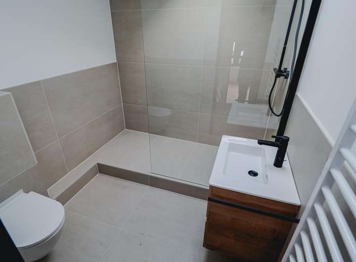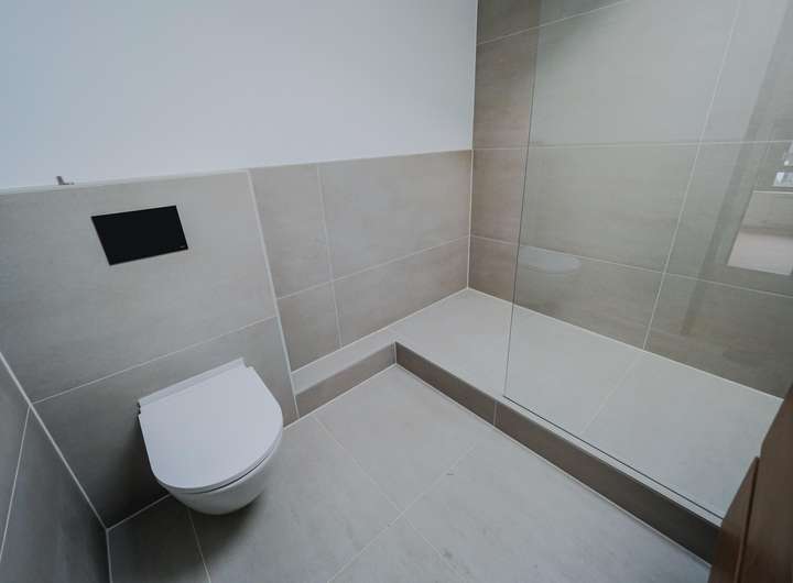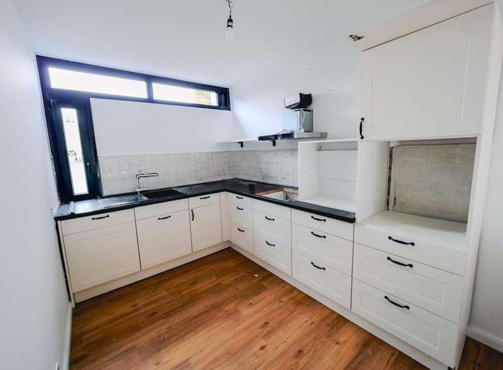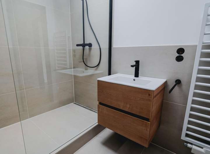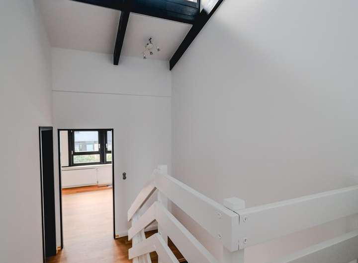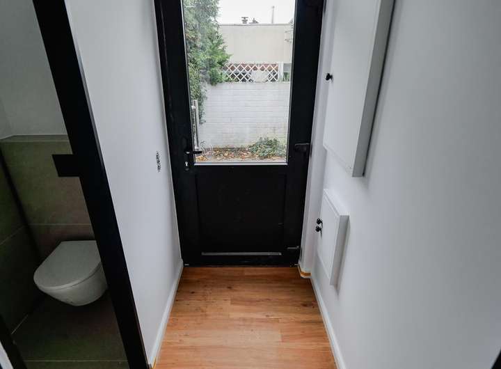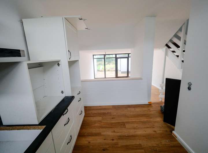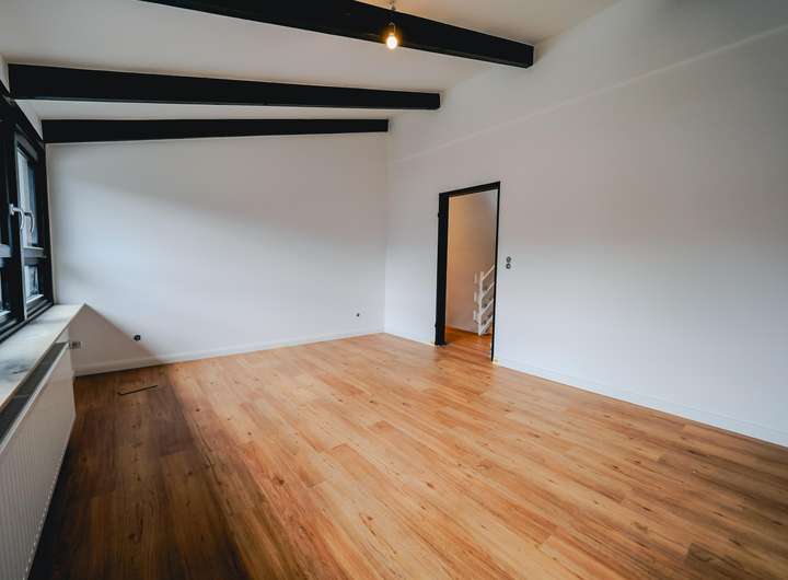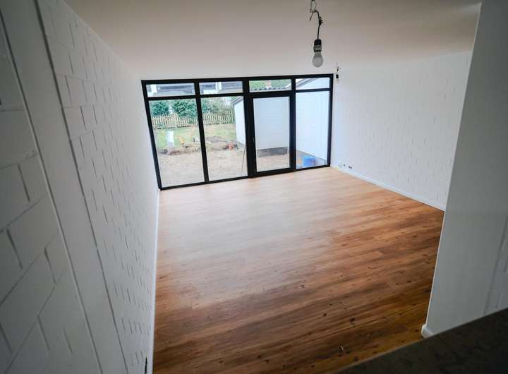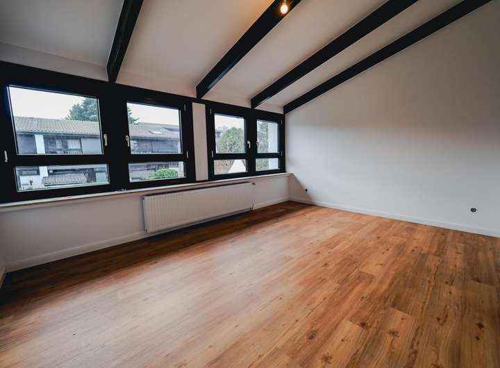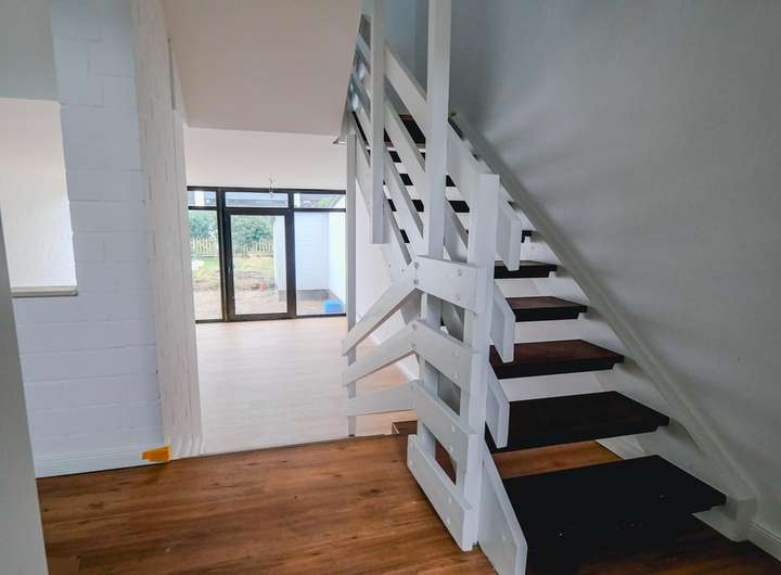 Die Modernisierung wurde nicht punktuell, sondern ganzheitlich umgesetzt. Neue Bodenbeläge, frisch renovierte Bäder, überarbeitete Innenwände sowie die neu angelegte Terrasse wurden so gestaltet, dass ein stimmiges Gesamtbild entsteht. Im Obergeschoss wurden sämtliche Fenster erneuert und zusätzlich gedämmt; die Fenster im Erdgeschoss wurden vor rund drei Jahren ausgetauscht. Die Fassade erhielt einen neuen Anstrich, die Oberlichter im Dach wurden ersetzt, und das Dach selbst wurde erneuert und gedämmt, wodurch ein zeitgemäßer energetischer Standard entsteht.