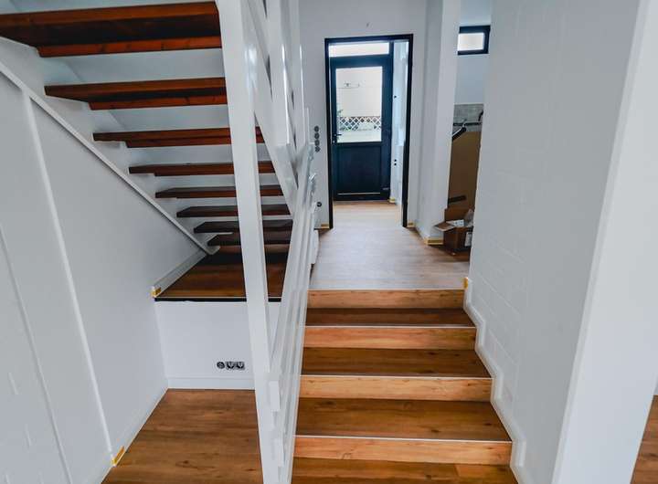 Auch technisch wurde das Haus aufgewertet: Die Elektrik wurde überarbeitet, ein neuer Sicherungskasten verbaut und im Erdgeschoss eine Fußbodenheizung ergänzt. Die Heizungsanlage ist rund acht Jahre alt und weiterhin zuverlässig. Die moderne Einbauküche (ca. zwei Jahre alt) fügt sich perfekt in den offenen Wohnbereich ein und betont den modernen Charakter des Hauses.