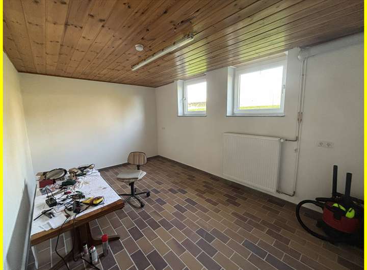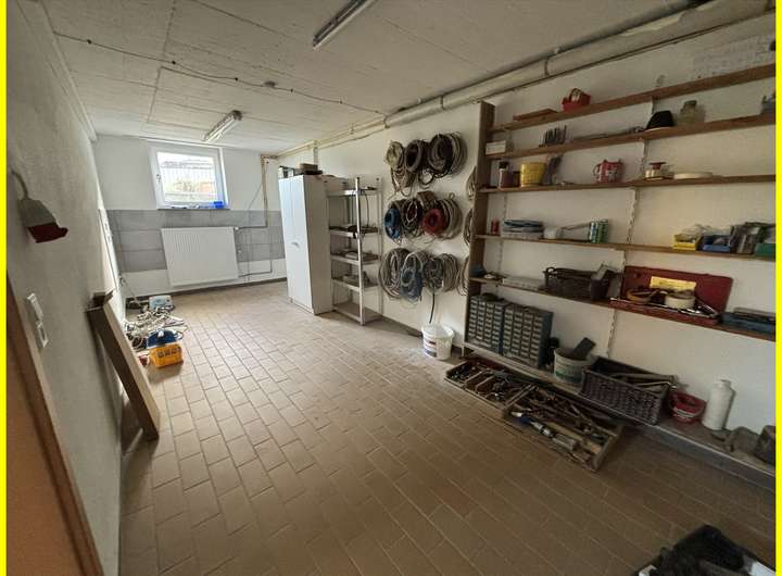 Der Keller wurde aufwendig modernisiert und bietet neben einem großen Hobbyraum auch zwei weitere Räume, einen Technik- und Waschraum sowie neue Türen und Fenster – ideal als Werkstatt oder Wohnraumerweiterung.