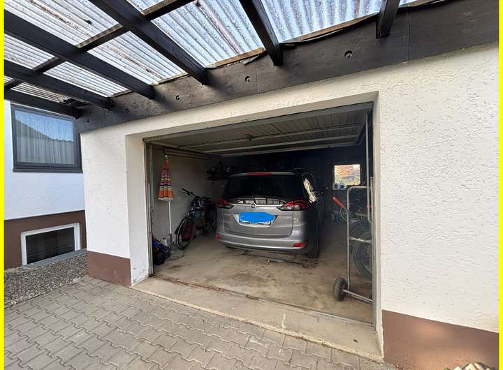 - Einzelgarage + überdachter Carport