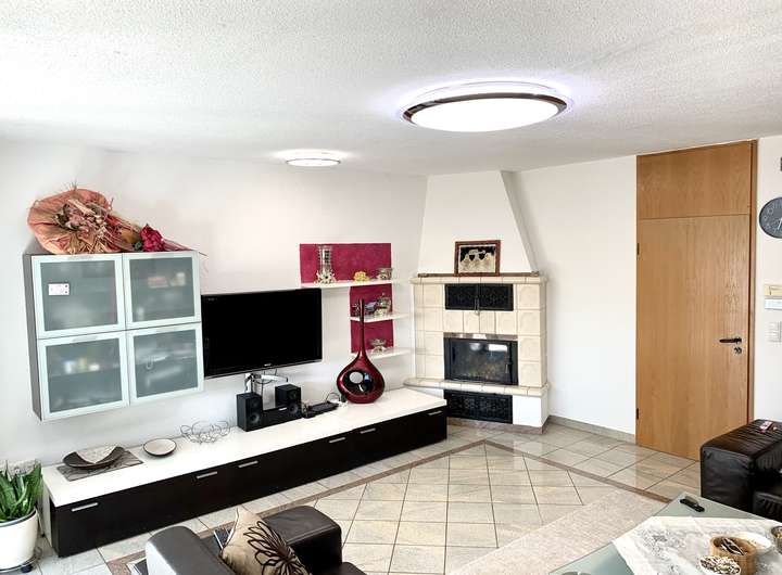 * Großzügiges Wohnzimmer mit gemütlichem Kamin
