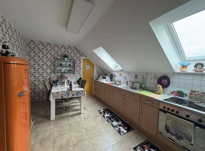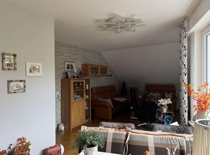 Dachgeschosswohnung: ca. 60 m² Wohnfläche, gemütlich gestaltet und ebenfalls mit Loggia