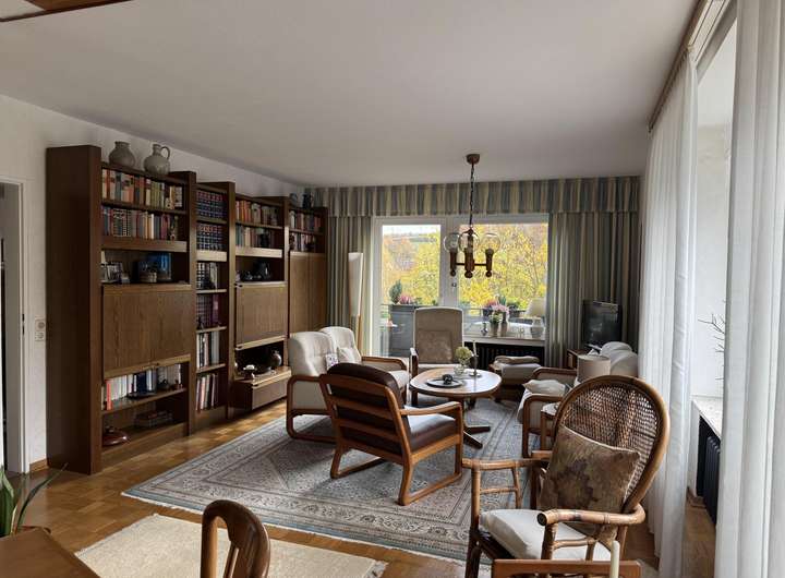 Erdgeschosswohnung: ca. 88 m² Wohnfläche, großzügig geschnitten mit Loggia und schönem Ausblick ins Grüne