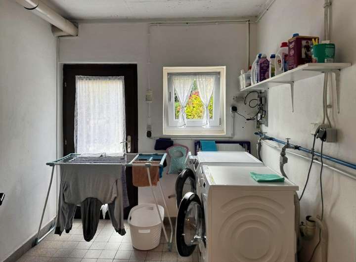 Das Haus ist teilunterkellert und verfügt über ausreichend Nutzfläche, darunter einen Heizungsraum, Abstellräume sowie eine Waschküche. Der pflegeleicht angelegte Garten bietet Platz zum Entspannen und wird gemeinschaftlich genutzt.