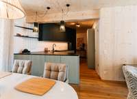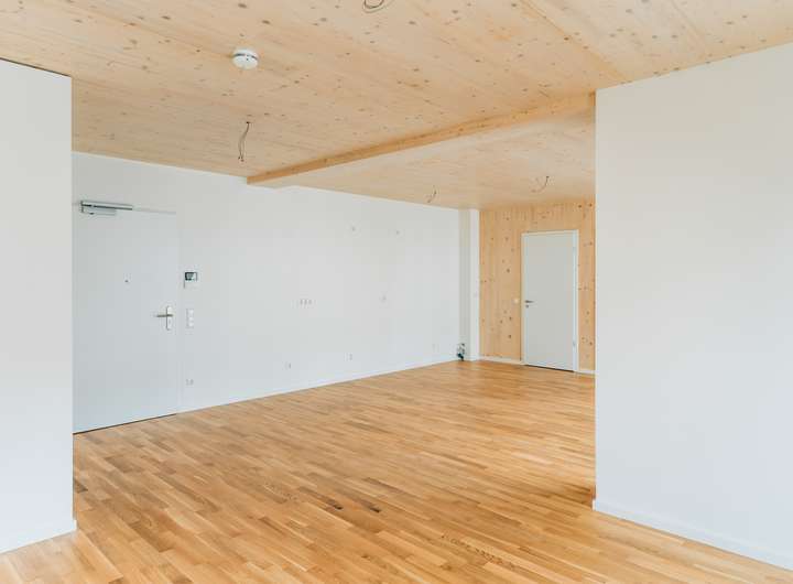 Großzügige Raumaufteilung, hohe Decken und das wohlige Flair von Holz.