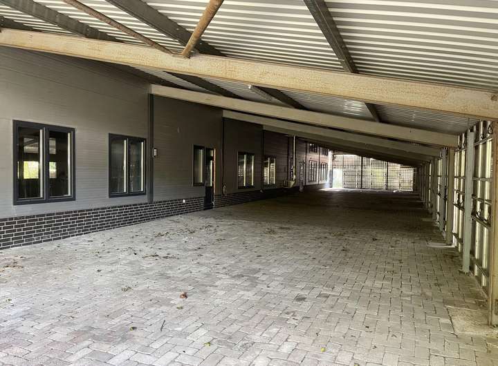 Der gesamte Außenbereich der Halle ist zudem hochwertig überdacht und auch an den Seiten windgeschützt abgeschlossen und bietet damit weiteren hochwertigen Lager- und Stellplatz.