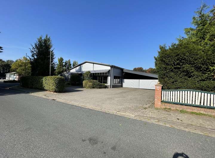 Haus und Halle liegen im einem Wohn-und Industriegebiet am südöstlichen Ortsrand von Friesoythe. Die umgebende Bebauung ist geprägt, von anderen kleineren Gewerbebetrieben, welche ebenfalls Wohnhäuser auf den Grundstücken errichtet haben.