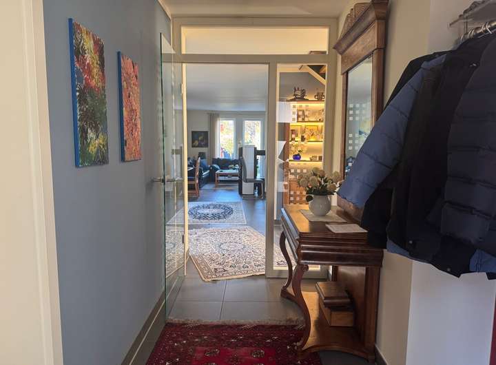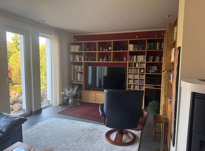 Highlights im Haus sind der Kamin, der für eine gemütliche Atmosphäre sorgt, die KNX-Steuerung für Licht und Rollläden sowie ein zentrales Be- und Entlüftungssystem.