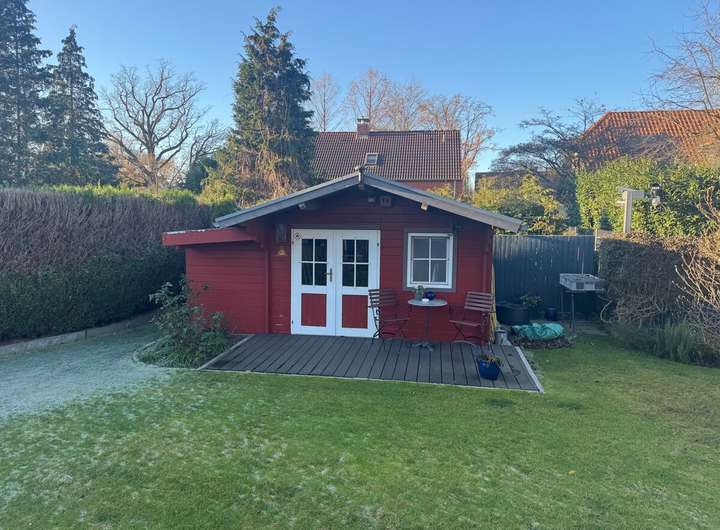 Vor dem Haus können Sie ein Auto im Carport unterstellen und dahinter stehen Ihnen noch zwei Stellplätze zur Verfügung. Angrenzend zum Carport haben Sie genügend Abstellfläche im Schuppen, der etwa 15 m² groß ist. Weiteren Stauraum bietet das Gerätehaus im Garten.