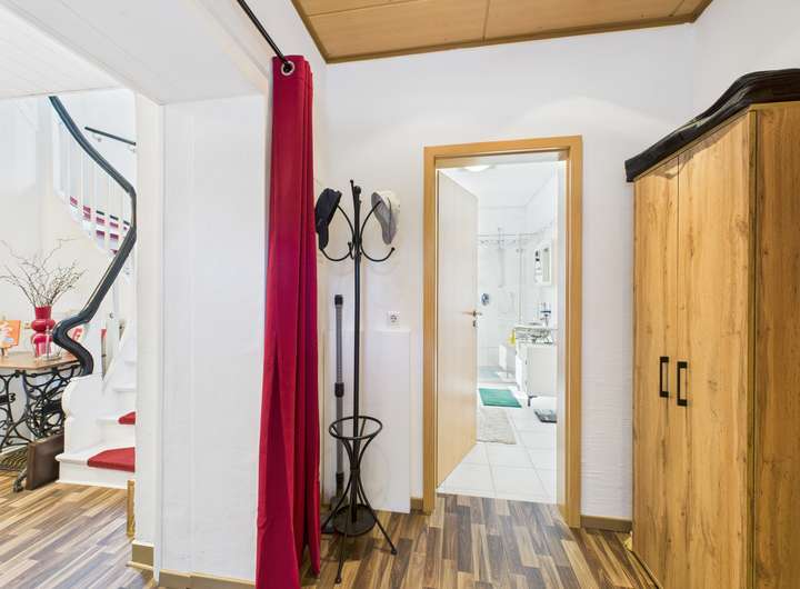Schon beim Betreten fällt auf, wie harmonisch sich Altbaucharme und moderner Anspruch hier begegnen. Das Haupthaus empfängt mit hellen, freundlich gestalteten Wohnbereichen, die durch ihre natürliche Ausstrahlung sofort ein Gefühl von Zuhause vermitteln. Die Wohn- und Lebensräume durchziehen eine ruhige, warme Atmosphäre, getragen von einer gewachsenen Bausubstanz und liebevoll gepflegten Details. Im Dachgeschoss entsteht mit dem Schlafzimmer und der angrenzenden Ankleide ein besonders privater Rückzugsort, der das Wohnen auf mehreren Ebenen sinnvoll ergänzt.